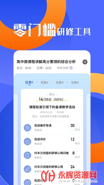 研修宝APP是广大教师面授培训的利器,专注于利用移动互联网实现面授培训过程中的专家、同学间交流互动、资源共享,打造面授培训与学习的好助手。软件上提供了丰富的教学资源,可供用户随时在线学习,使用起来非常的方便,可以很好的帮助大家学习更多的知识!欢迎感兴趣的朋友们前来永辉资源网下载!