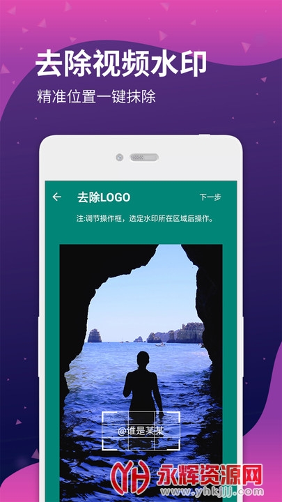 2、视频去水印:拖动选取框轻松选择短视频中水印部分,一键快速去除短视频水印!瞬间短视频变得清爽干净!