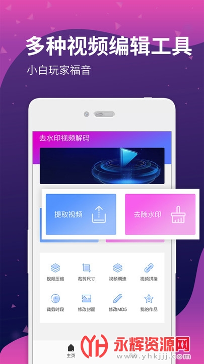 去水印短视频app是一款非常好用的视频去水印解码软件,这款软件可以一键去除水印,同时还支持多种视频编辑工具,涵盖了视频裁剪、视频拼接和视频倒放等功能,可以帮助大家轻松编辑各种有趣好玩的视频!还可以给视频添加水印和背景音乐,打造出自己专属的精彩短视频!欢迎感兴趣的朋友们前来永辉资源网下载!