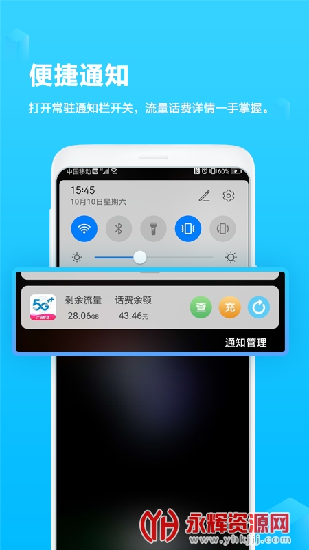 话费、流量、余额、账单等随时查,流量包、大流量套餐、宽带等一键办理。
