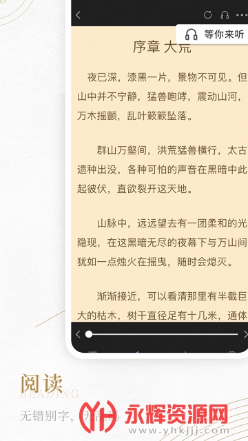 看小说、阅读、听书必备小说阅读神器,平台涵盖各类全本小说、电子书等优质内容!