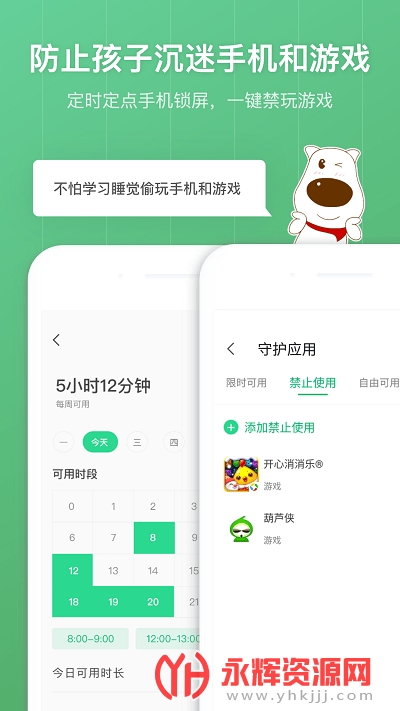 3.时间管理:设置孩子设备锁屏时段,时间一到自动锁屏.养成良好作息习惯