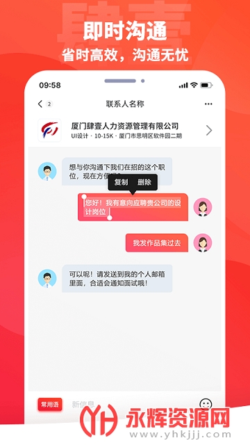 提升求职者在找工作过程中的公正性、透明度,招到喜欢的职位可以与招聘方在线聊一聊