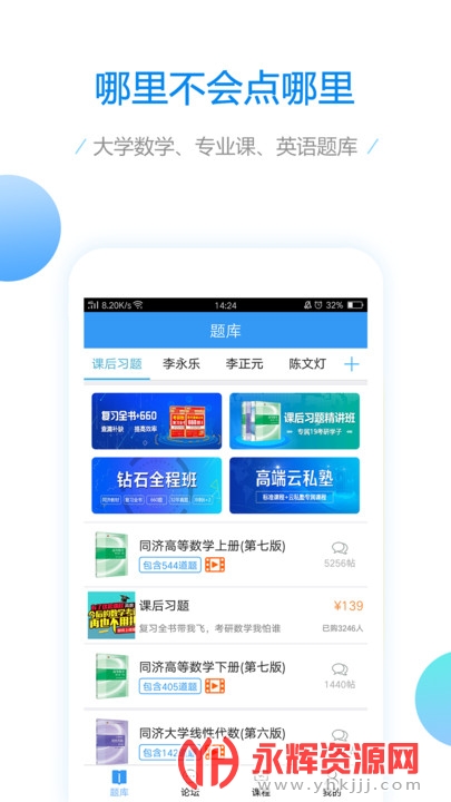 签约了全国知名的数学老师,李永乐,李正元,陈文灯等数学老师,--答疑解惑,大学数学还可以帮助您针对数学制定学习计划和学生疑问,难题的解答大大提升学生学习的效率。