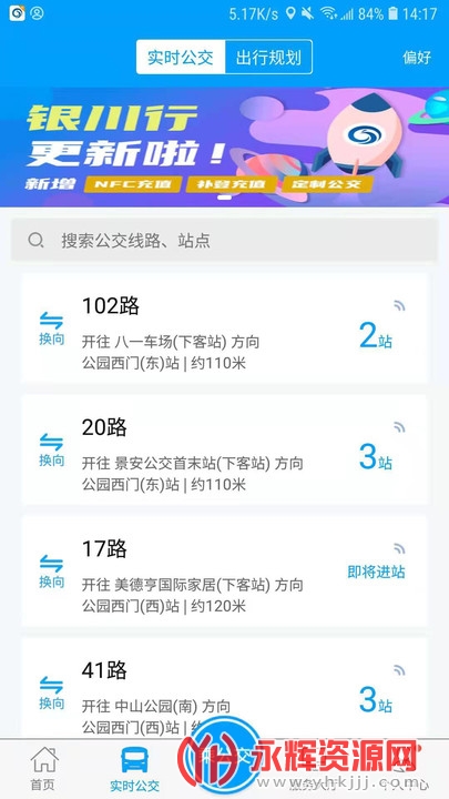 银川行新版app专为银川本地用户打造,是一款非常实用的公交出行软件,用户们可以通过这款软件实时查看最新的公交资讯信息,了解公交的实时位置信息和站点信息等,同时还可以查看换乘路线,让出行变得更加快捷!并且还支持一件扫码乘车功能,非常的方便好用!欢迎感兴趣的朋友们前来永辉资源网下载!