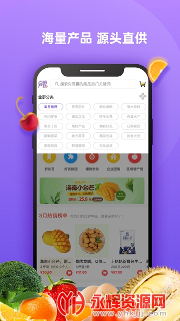 生鲜水果、肉禽蛋、水产海鲜、米面粮油、休闲食品、日用百货等,一站可采齐