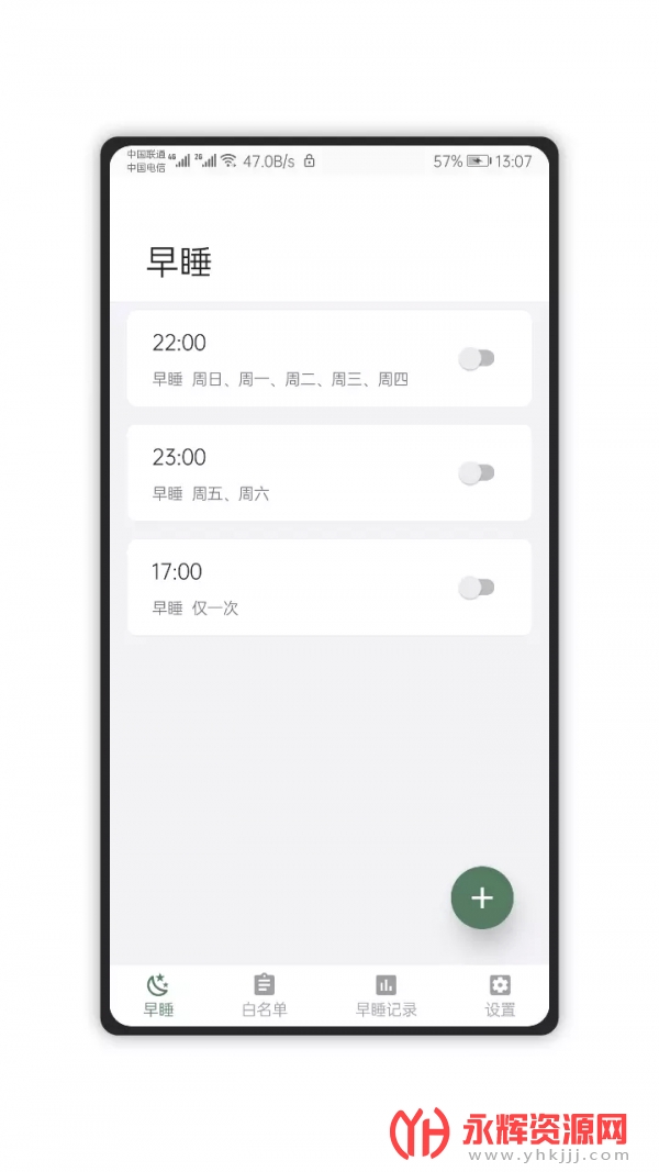 添加早睡应用的黑名单,在早睡时间段不可以使用手机应用;