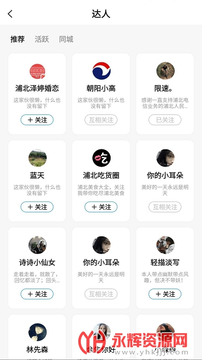 根据达人推荐,迅速陈列出分享达人, 一键即可关注;