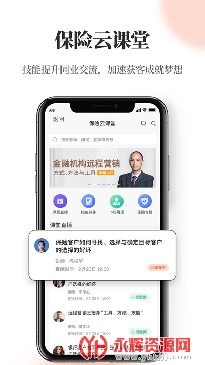 【保险云课堂】:海量课程教学、产品路演、大咖讲师剖析保险产品,传授沟通技巧,沟通更高效