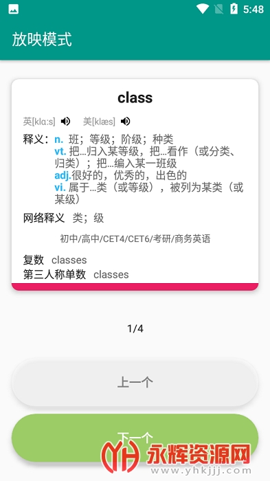 3、每一个单词的释义以及发音都有详细的介绍,也能帮助考生们来备考英语四六级。