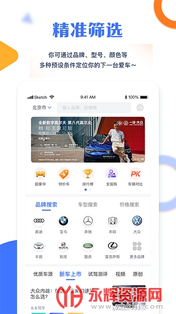 【精准筛选】您可通过品牌,型号,颜色等多种预设条件,定位您的下一台爱车;