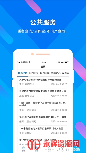 资讯服务:便民提示、晋城动态、公告公示等各类资讯信息