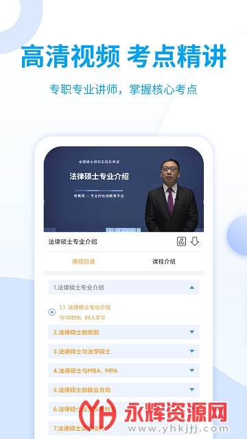 法律硕士在线视频课程支持免费试听,语速调节、离线下载等丰富的自助学习功能;