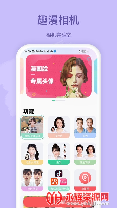 一款全新的特效相机,拥有时下潮流先进相机技术,只需一键, 轻松生成漫画专属头像以及照片修复、在线染发、变老变年轻、神奇变脸、性别转换等魔-幻功能【漫画专属头像】