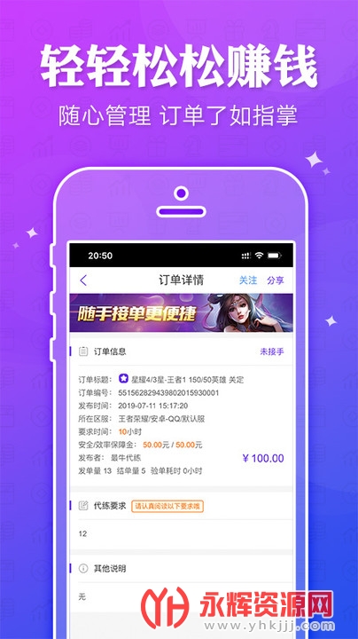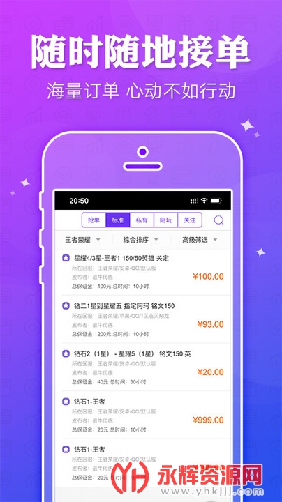 除了代练接单之外,也可以接陪玩订单以及比赛约战的相关订单。