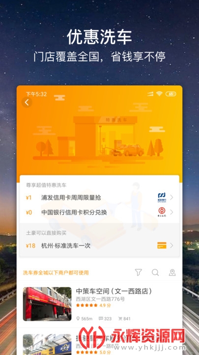 1、优惠洗车:随时随地洗车,省钱方便。
