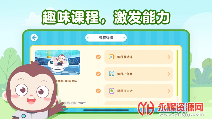 猿编程启蒙app是一款非常优质的幼儿编程学习软件,软件中有着多种编程趣味学习课程,能让孩子们更好的进行学习,有需要的朋友们快来永辉资源网下载吧!