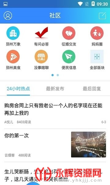 将线上讨论圈子进行了分类,如房屋租售、视频共享、车友聚会等,方便查找感兴趣的圈子;