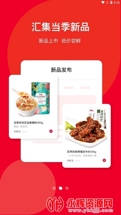 百草味商城app是一款非常受欢迎的零食购物平台。软件中有着超多好吃的零食,你可以放心选购,都是可以为你配送到家的,快来永辉资源网下载吧!