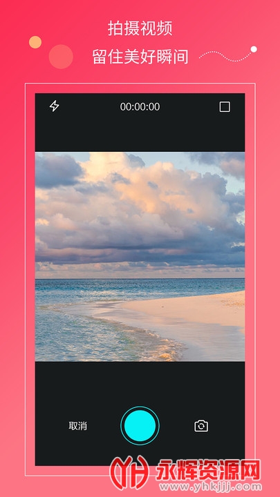 视频拍摄功能,你可以拍摄你喜欢的视频,配上文字上传分享给大家。
