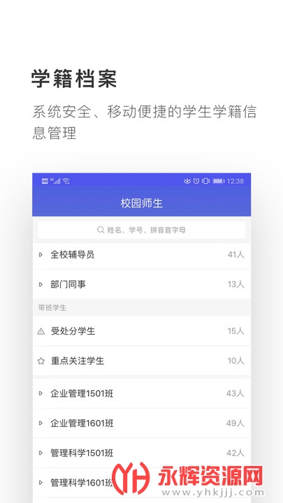 学籍档案:系统安全、移动便捷的学生学籍信息管理。
