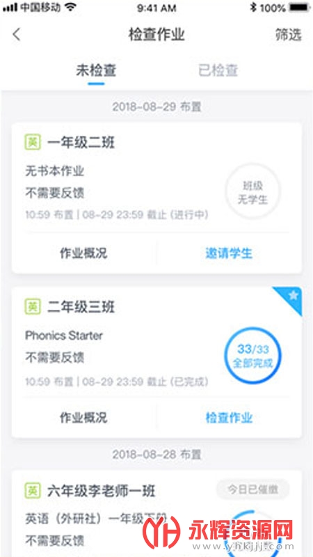 在平台里能够随时的查看学生的作业,用户能够实时了解学生的作业情况。