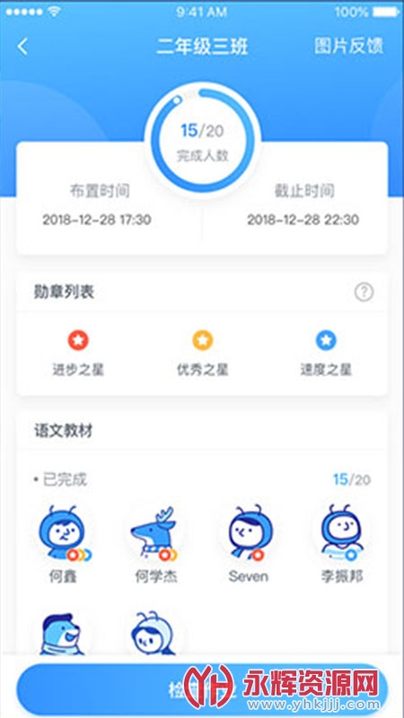 布置作业:随时随地在线布置、批改及检查作业完成情况,帮助老师摆脱传统、低效的纸质作业工作,实现轻松教学。