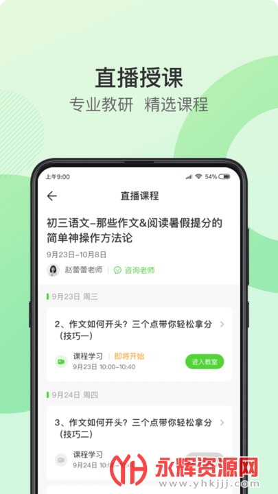 1、直播授课:专业教研,精选课程。