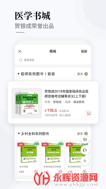 商城模块,可以购买到大量的医学产品、医学图书等,在线即可采购;