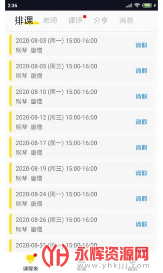 学生的上课记录包括停课、请假和旷课。智能统计可在App上获得。老师和家长可以在App上查看排课记录、退课记录、请假记录和剩余课时,所有记录一目了然。