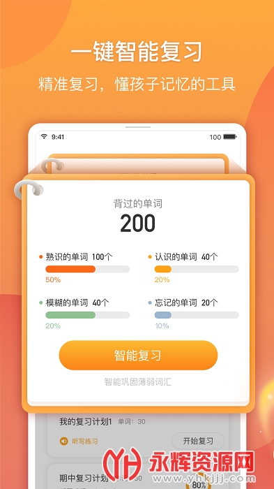 一键智能复习:精准复习,懂孩子记忆的工具。