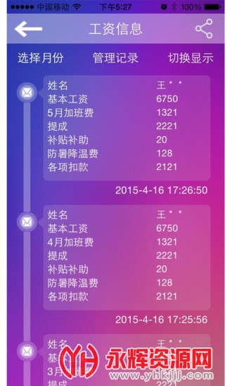本工资条App是配合PC版掌上腾飞、EXCEL群发工资软件一起使用的,只要财务人员在PC软件上发送过的工资信息,员工都可以通过掌飞工资条软件查询到已发工资信息
