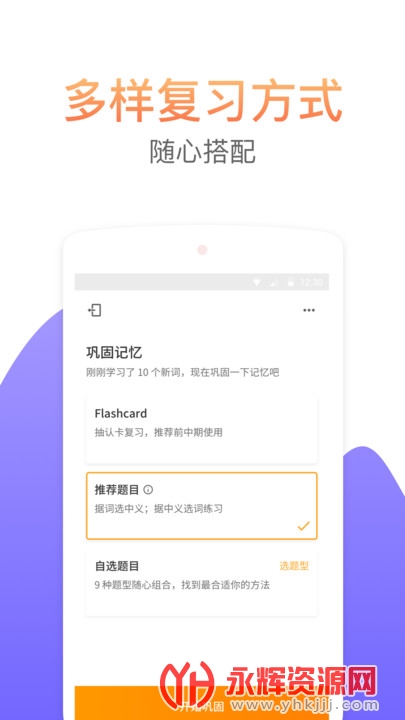 单词电台、极速刷词、听写练习、抽认卡片……随时随地掏出手机,多种酷炫的复习姿势任你选。