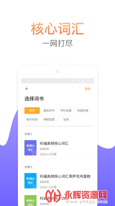 词量大、词汇全、分类细,6000+考点词汇编,基础词、核心词、冲刺词应有尽有,按考试类型分为学科、校园等多维度场景。