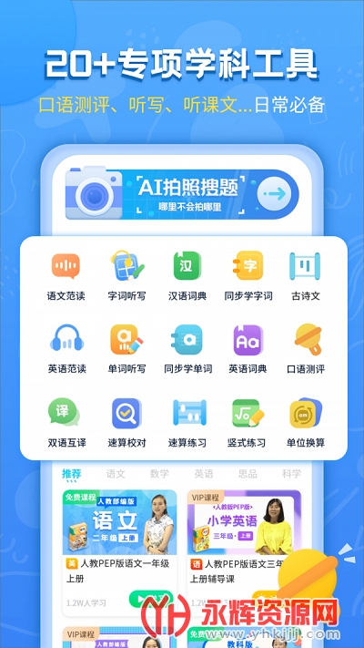 小学课本同步辅导app是为广大小学生朋友们提供的课后学习软件,软件中有着非常优质的学习资料,还可以为你定制学习计划,有需要的朋友们快来永辉资源网下载吧!