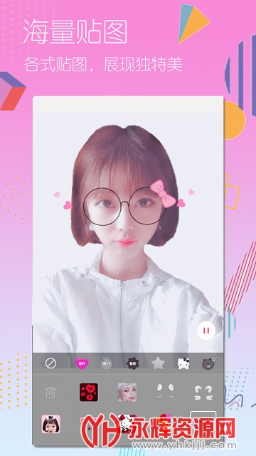 【动效贴纸】强大动效贴纸库,自动人脸识别,一秒美萌可爱,超丰富的动效贴纸库!