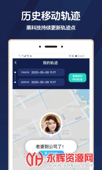 历史轨迹:过去时间段的运动轨迹,随时了解ta的活动情况。