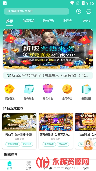游戏推送,每日自动为你推送你喜欢的游戏,每天打开都可以看到不同游戏。