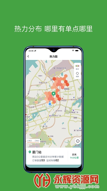 智能热力图实时展示订单最多地点,找到优质接单点;
