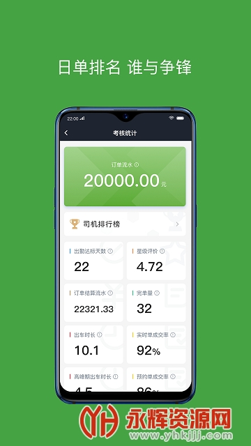 支持线上查看每日流水,浏览每日司机排行榜榜单排名;