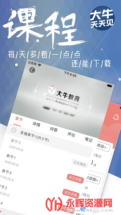 课程,海量的课程都是可以通过这款软件来学习的,用户可点击都自己的章节里面来学习各种教育课程。