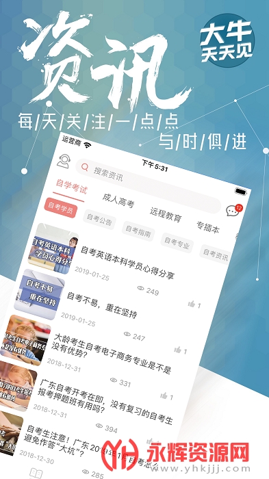 拥有还可以随时检查职业培训内容,可以随时了解自学考试资源。