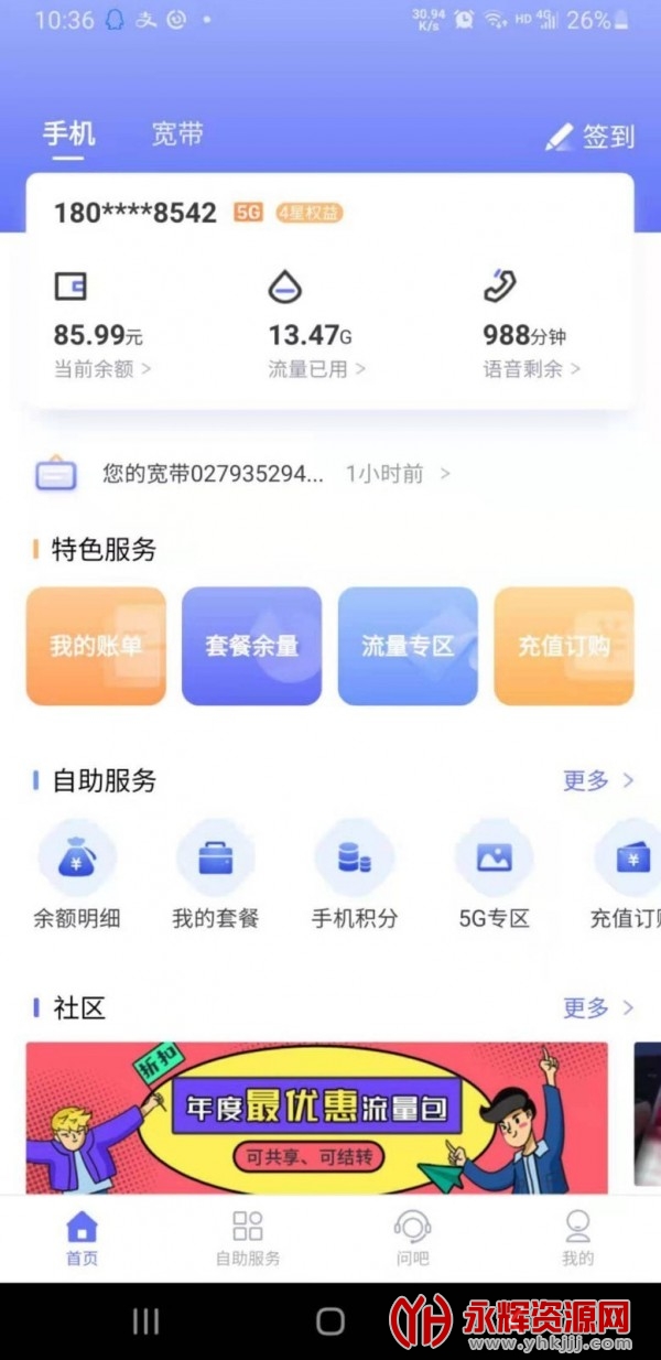 登录可查询当前话费及剩余流量,有无乱扣费、流量偷跑,一览无余!