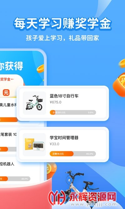 完成学习任务就获得奖学金,上百种学具玩具免费兑换,帮助学生养成良好学习习惯,让孩子有目标,有动力,爱上学习!