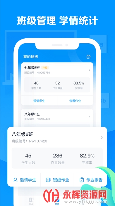 作业布置后即可实时掌握作业进行的进度,实时查看数据。