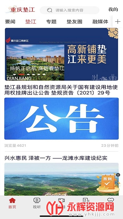 平台拥有新闻,视听,直播,问政,服务等内容板块,可以帮助更好的引导及服务垫江;