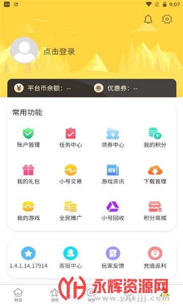 九四酷玩app是一款十分火爆的手机游戏盒子软件,在这里你可以第一时间下载到最新的游戏,还可以领取到游戏礼包,快来永辉资源网下载体验一番吧!