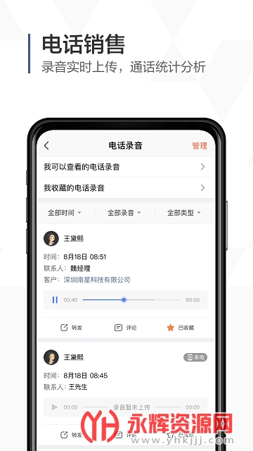 PC端一键拨号、电话录音、电话数据统计、电话排行榜、客户跟进计划,让CRM与电话机完美结合,帮助企业掌握员工通话数据,优化沟通话术,提升销售业绩