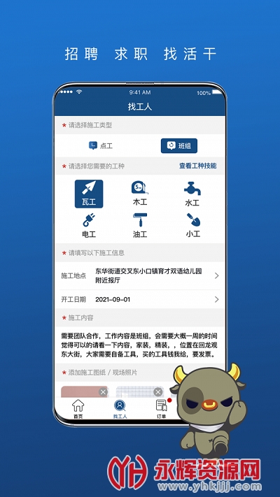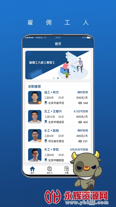 壹用工app是为从事建筑行业的朋友们提供的招聘找工作软件,在这里你可以放心的找到一份适合自己的工作,有需要的朋友们快来永辉资源网下载使用吧!