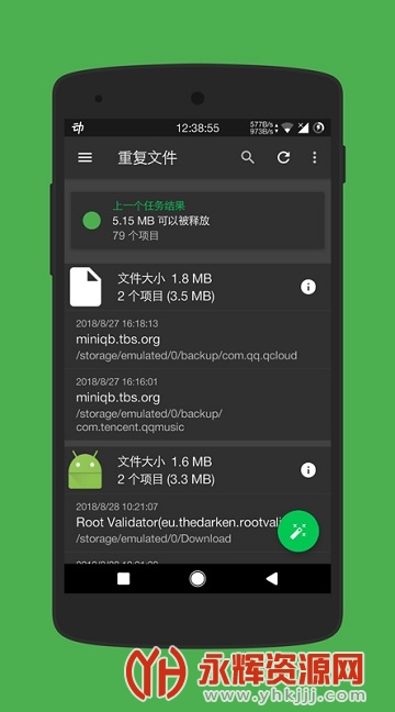 重复文件:仅显示完全相同的文件,通过比较文件校验码以及文件大小来确保这一点。文件名称以及修改日期是无关紧要的,SD Maid将确保您删除时留下一份副本。